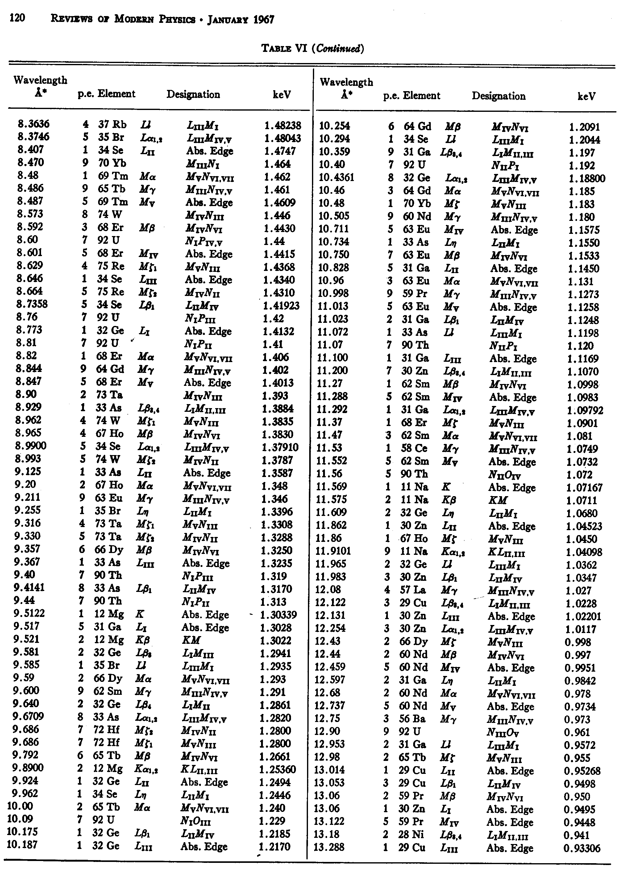 Bearden Catalog (RMP 39, p 120): 8.3636 - 13.288 Angstrom; 1.48238 - 0.93306 keV