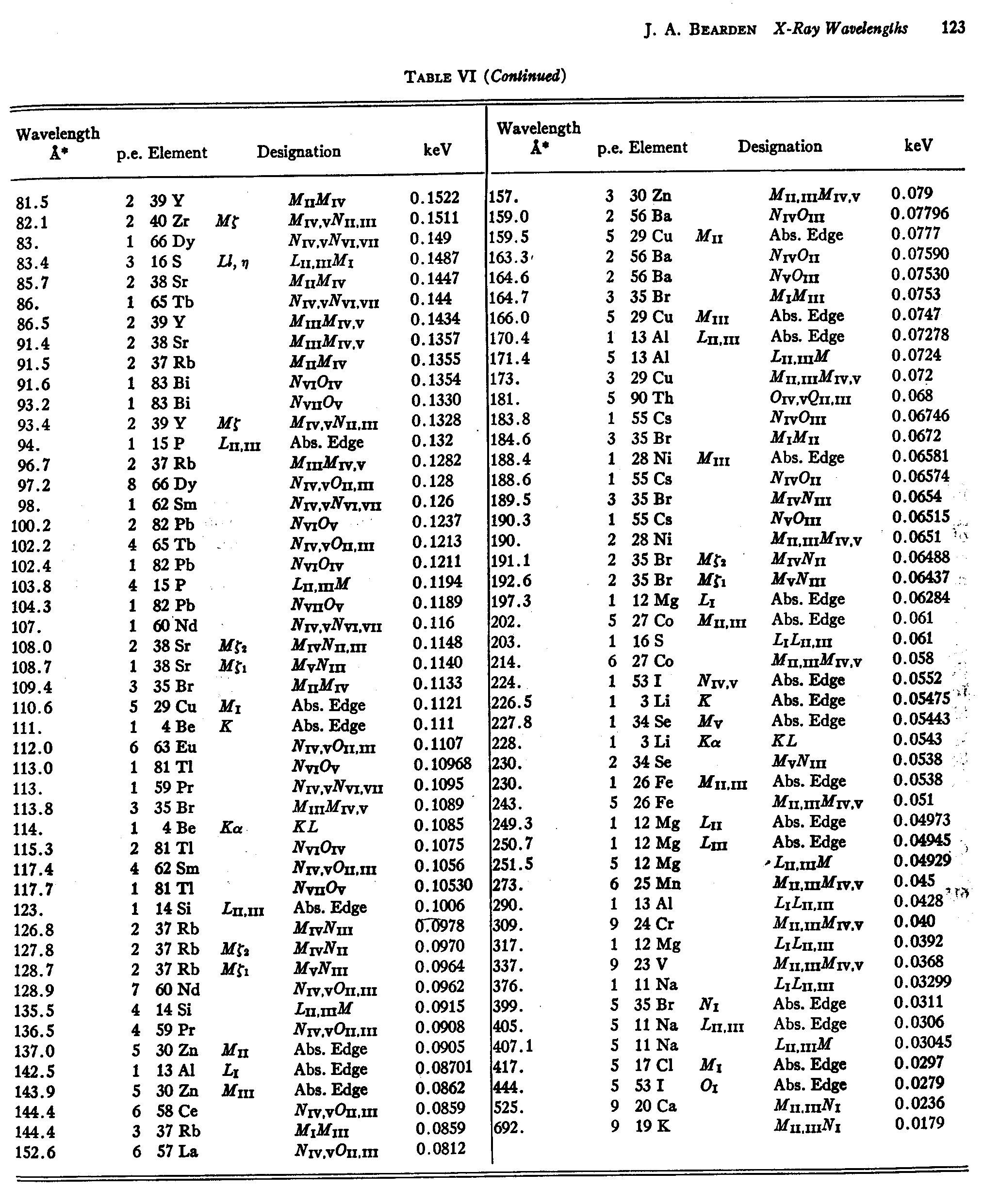 Bearden Catalog (RMP 39, p 123): 81.5 - 692.0 Angstrom; 0.1522 - 0.0179 keV